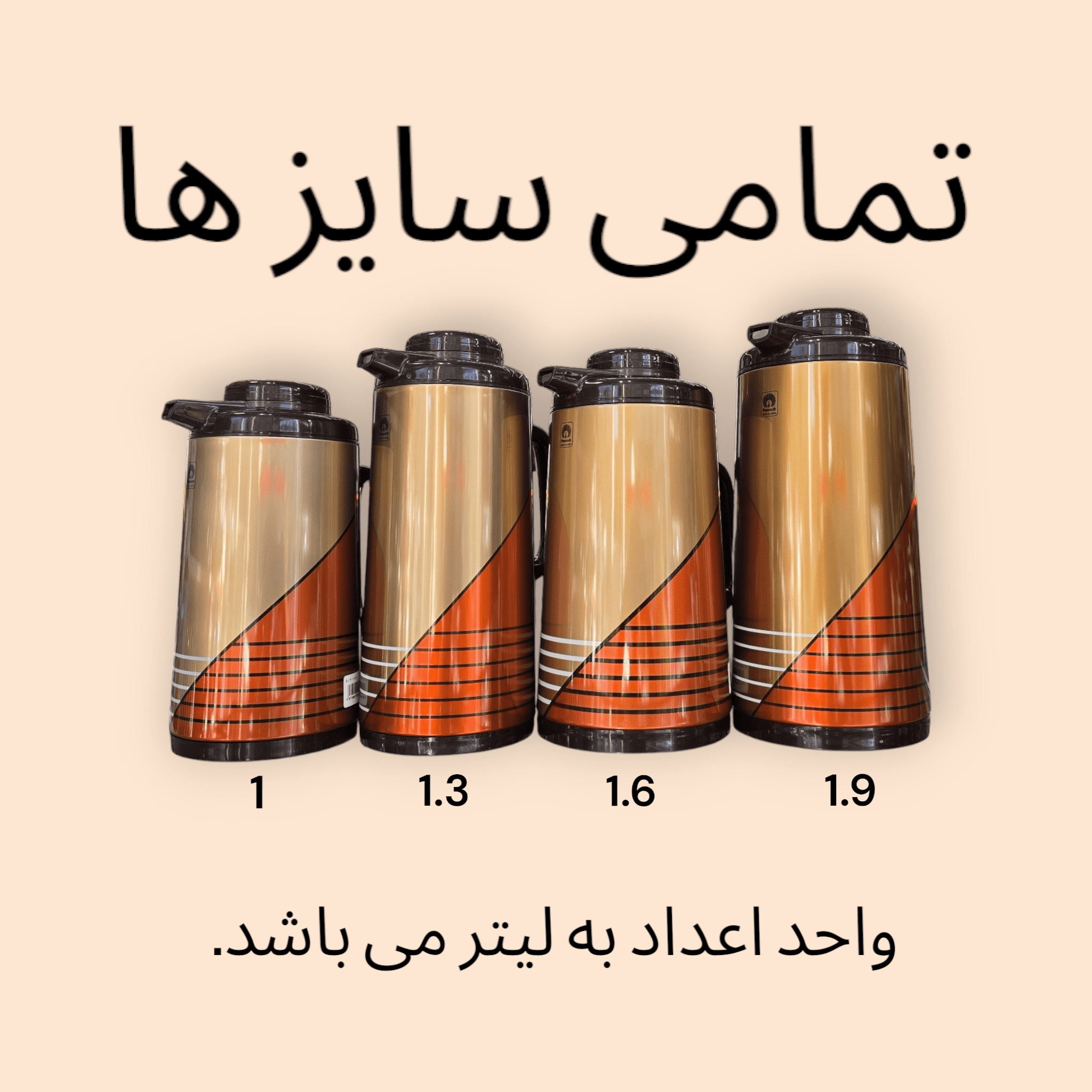 در جریان باشید این فلاسک در دو رنگ آبی و قهوه ای و در 4 سایز مختلف قابل سفارش هست. که میتونید قبل از ثبت سفارش اون ها رو انتخاب کنید. تفاوت ابعاد هر 4 سایز در عکس آخر گذاشته شده است.